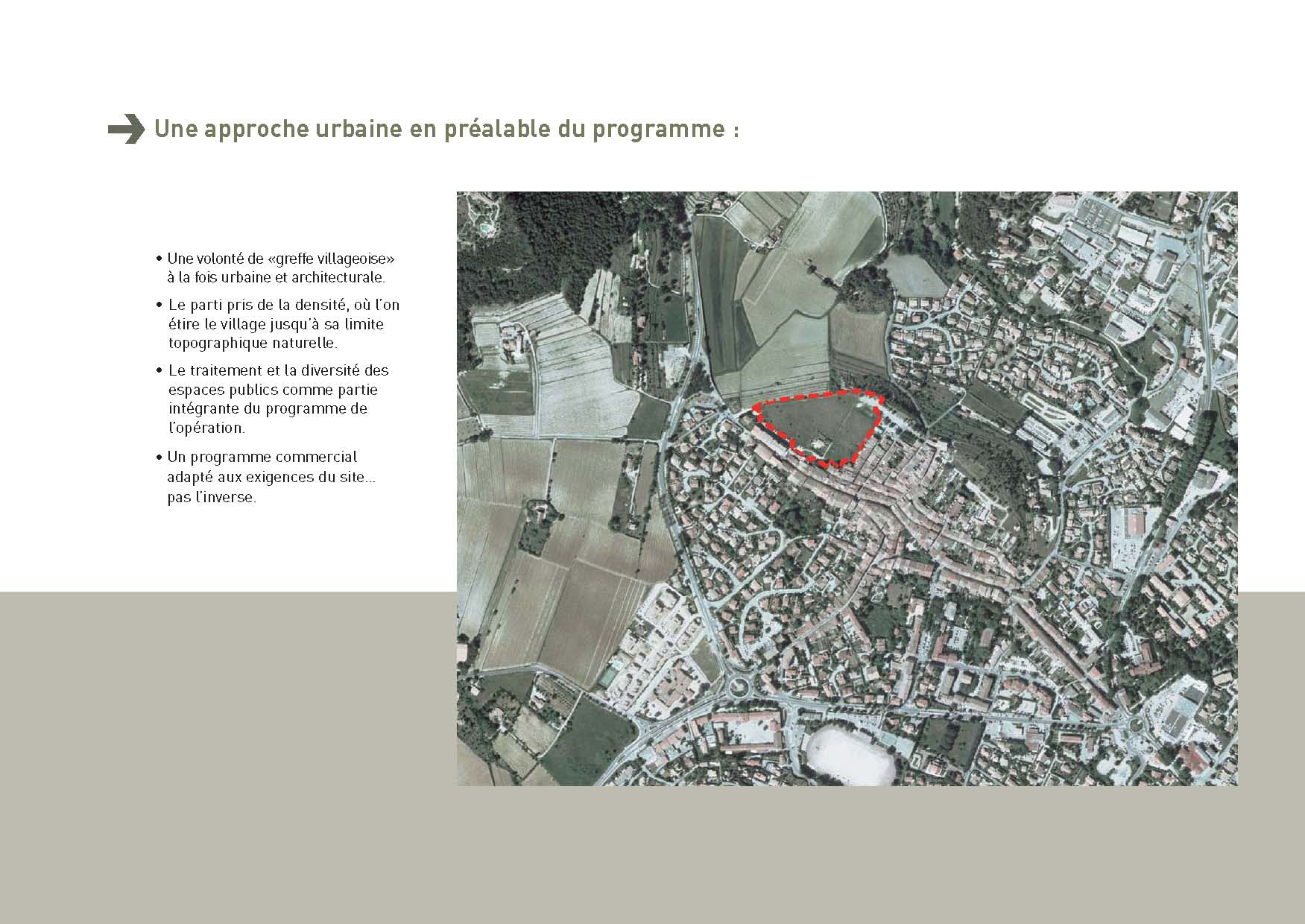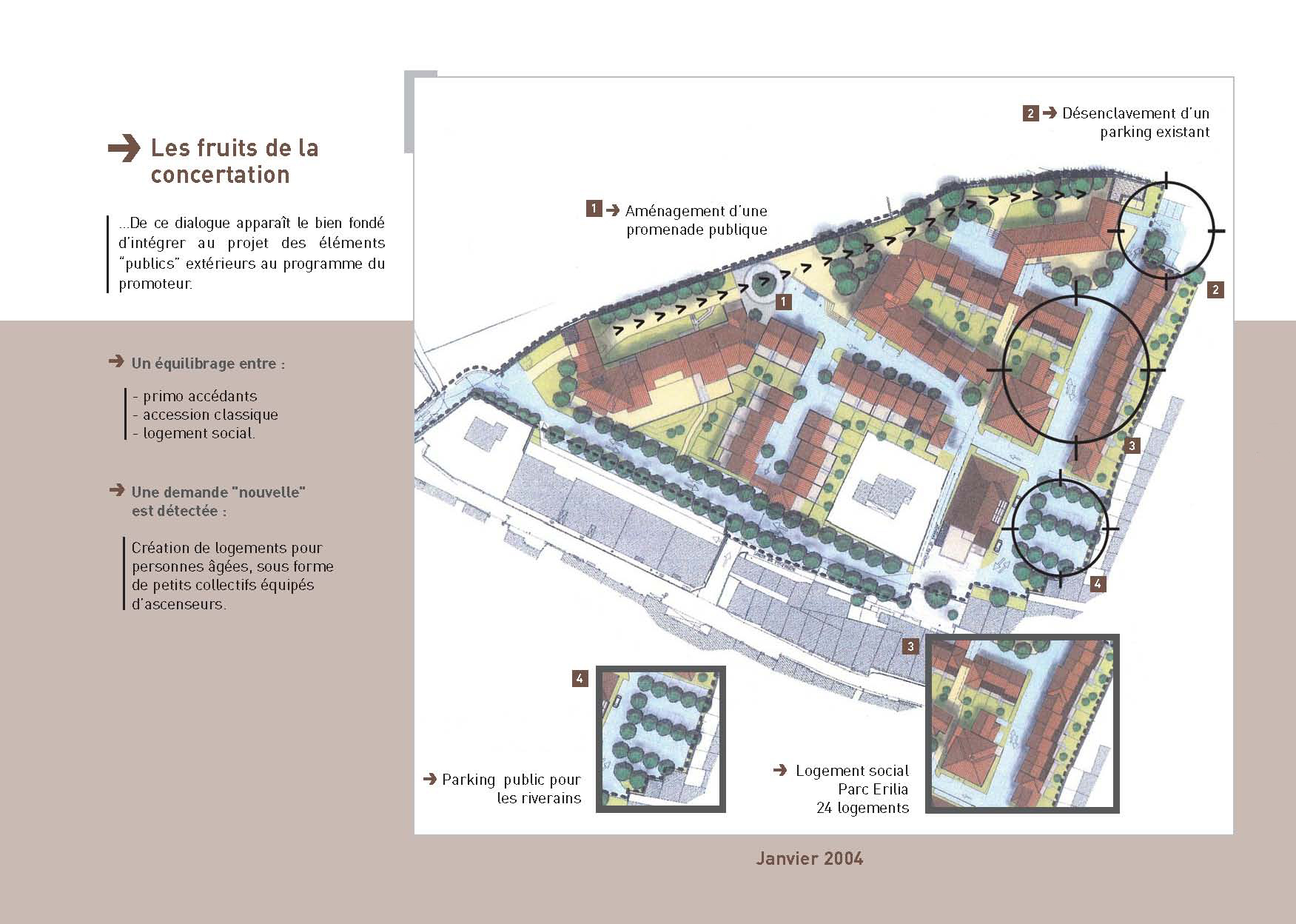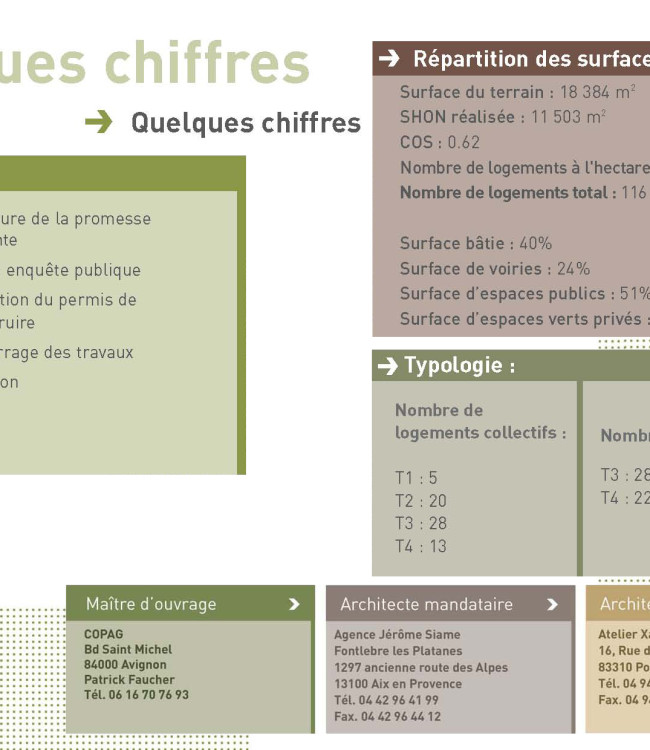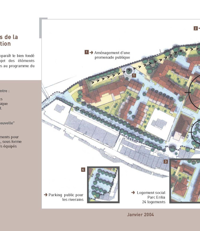 Niveau de participation : Analyse urbaine et viaire, aménagement des espaces publics, Construction de 116 logements privés. Mission complète de maîtrise d’oeuvre.
